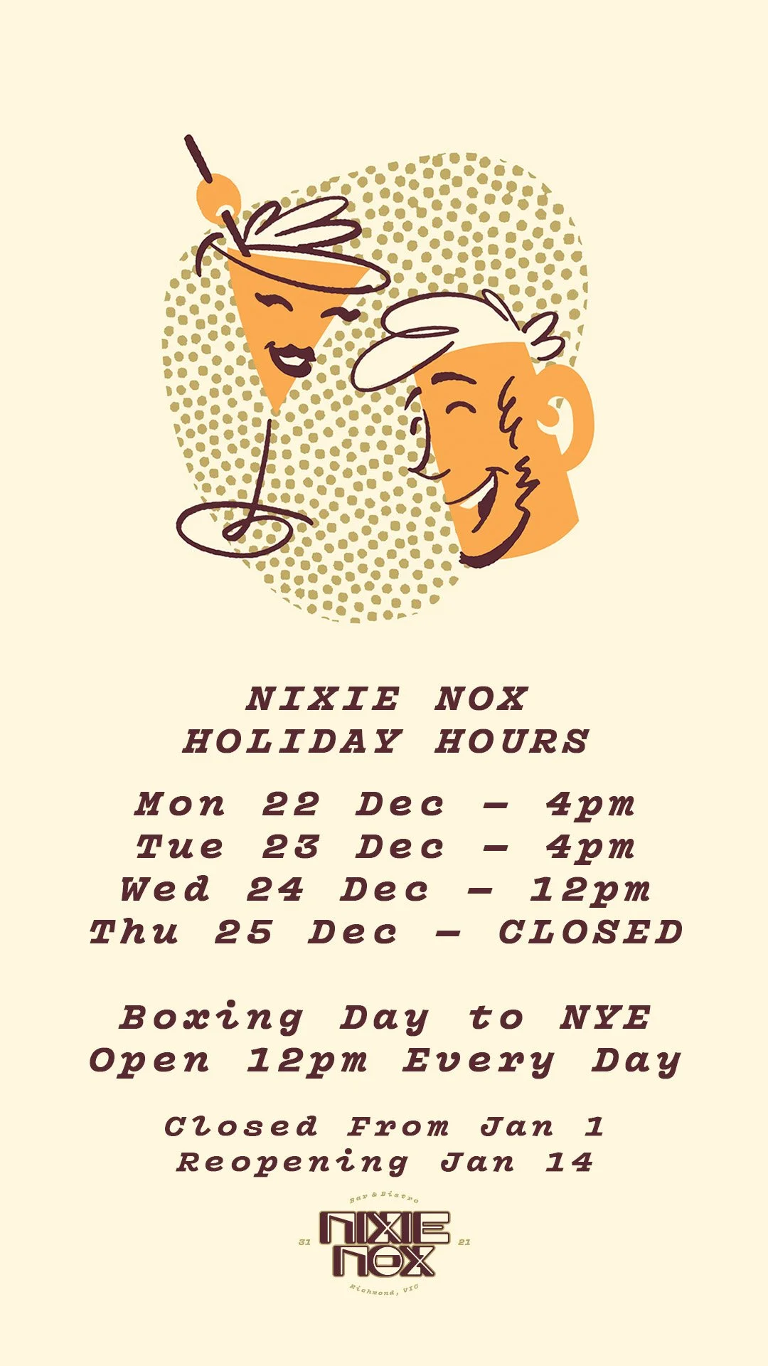 Pull up a pew, grab yourself a drink or two and have a yarn at Nixie Nox - Richmond’s newest, smallest pub.